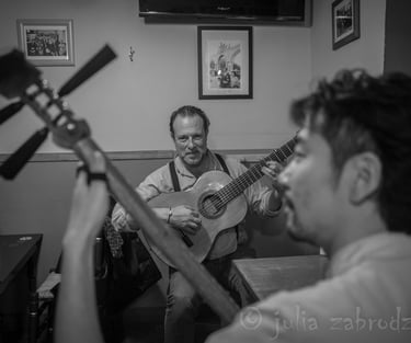 Mi experiencia artística ha sido muy intensa y desde pequeño. Todos esos momentos han contribuido a desarrollar esa especial manera mía de expresión encima de los escenarios y como no, también han modelado mi vida personal .He sentido los lamentos del flamenco hasta cuando dormía, acompañe con mi guitarra a grandes figuras ,obtuve un primer premio nacional de guitarra flamenca y todo eso me llevo a dar conciertos de guitarra por escenarios de España y Europa.